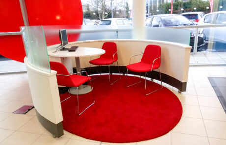 We were recently approached by Hippo Motor Group, a UK-based independent used car dealer, to design and supply the furniture at their new Peterborough site. The key requirement of this project was a quick turnaround time, which we were more than happy to facilitate. From first contact to installation, the duration of the project was 4 weeks, with the design generated within one week.