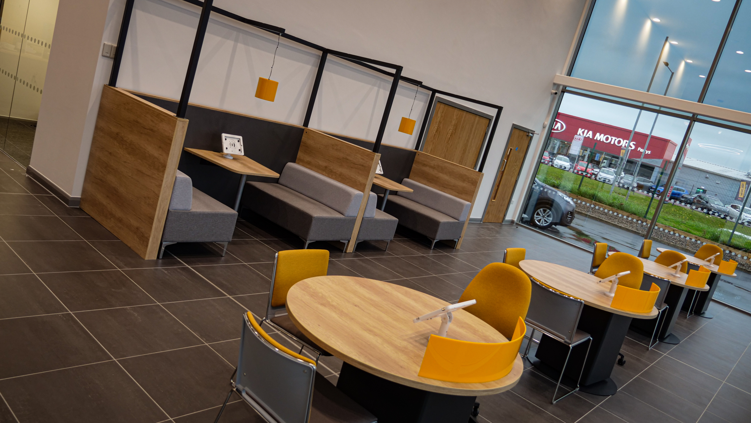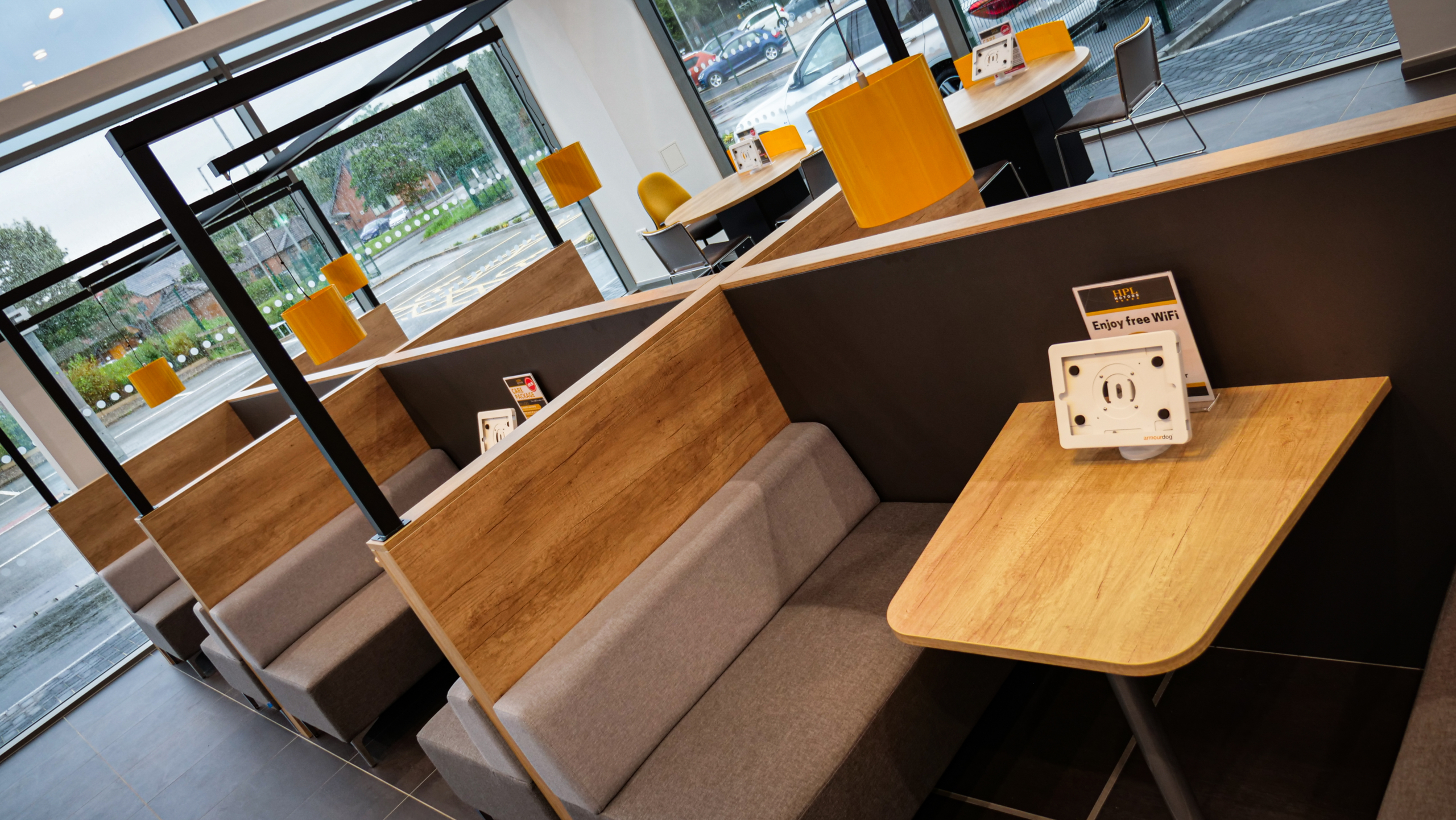 Interact were commissioned by HPL Motors to design and supply a light, airy and relaxed showroom with a ‘hotel lobby feel’.