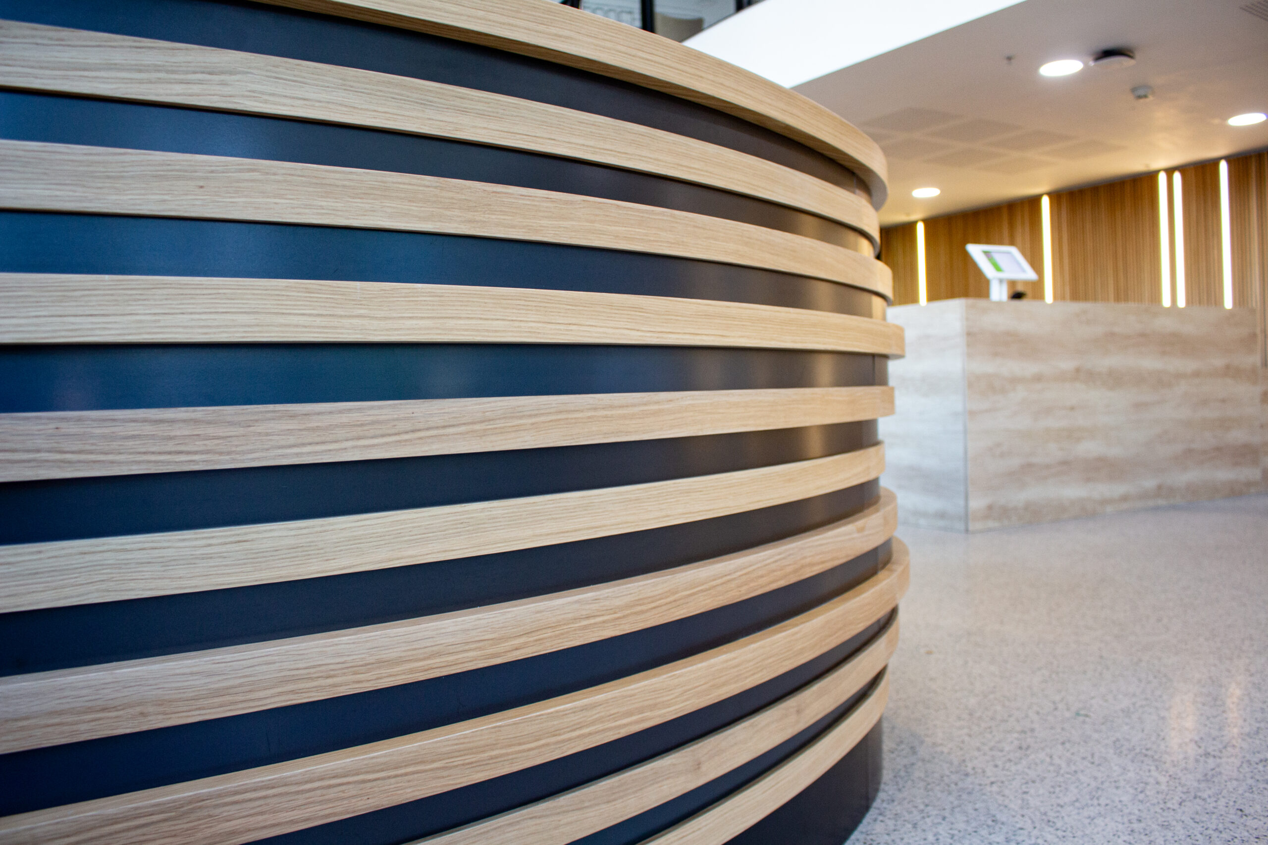 From the outset, this was a six-month project involving intricate design development and prototyping. While the core concept was clear, the details needed to be carefully explored and refined through close collaboration. By working alongside the architect throughout the process, we were able to retain the integrity of the original vision, while resolving the practical considerations that make a reception desk work in a busy environment. This included ensuring the desk suited the available footprint, creating a layout that supported efficient staff workflows, and refining the geometry so the finished piece aligned seamlessly with the space around it.
