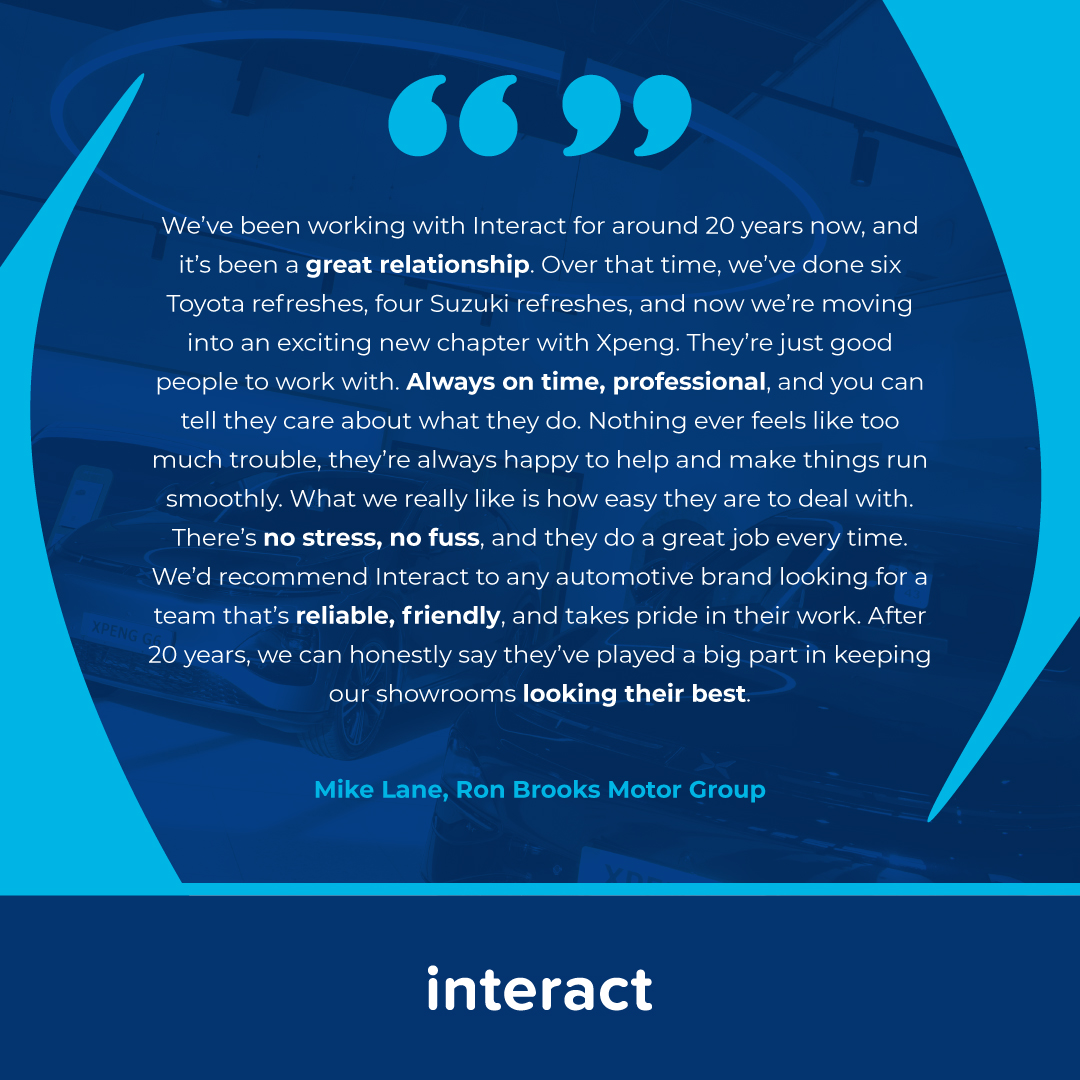At Interact, client satisfaction and high-quality showrooms that hit the mark will always be at the forefront of our operations.